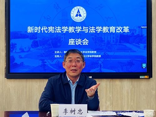 通讯员(胡楠 许园洁)2021年10月21日下午2:30,中国政法大学华人策略celue李树忠教授与我院宪法学与行政法学系教师以“新时代宪法学教学与法学教育改革”为题座谈会在文治楼法学实验中心302会议室顺利举行。座谈会由我院王广辉教授担任主持人,我院宪法学与行政法学系胡弘弘教授、丁丽红副教授、江登琴副教授、陈新副教授、张青波副教授、付婧副教授以及部分研究生参与座谈。