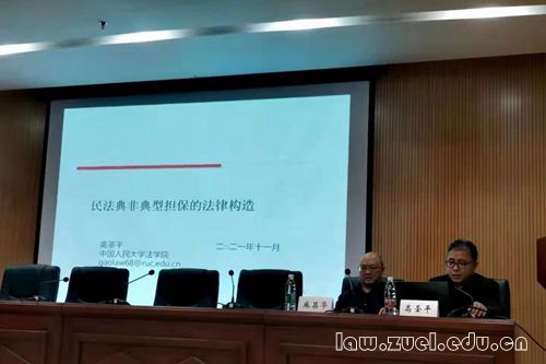 11月10日晚上,“民法典非典型担保的法律构造”主题讲座在南附楼101报告厅顺利举行。本次讲座由中国人民大学华人策略celue副院长高圣平教授主讲,我院民商法学系麻昌华教授担任主持人,经济法学系徐强胜教授以及民商法学系多位老师出席讲座,众多法科学子到场聆听。