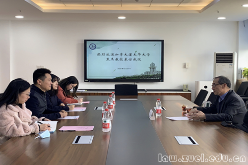 李俊副院长表示我院高度重视国际化建设,注重培养学生的国际化能力。他从法学本科人才培养的角度切入,详细介绍了我院国际联合培养学位项目班以及法学(涉外经贸方向)的办学特色。李俊副院长对焦杰教授介绍的普通法课程项目表示高度期待,强调该项目贴合现阶段国家对于高校涉外法治人才培养的现实需要,将为我院学子提供更优质的学习资源和更丰富的出国交流机会,有助于进一步提升我院的国际化交流水平。