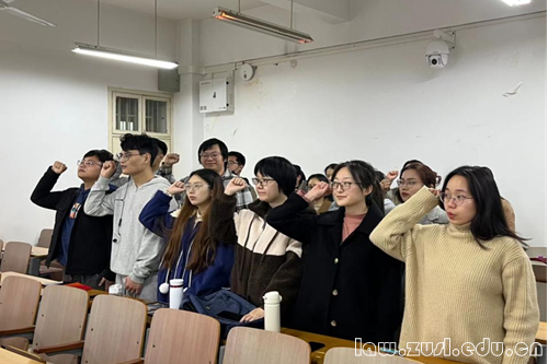 活动伊始,周雨琪同志介绍了开展此次主题党日活动和党支部间共同学习交流的重要意义。随后,全体党员起立,奏唱国歌,慷慨激昂的旋律流入每一个人的心底,崇敬之情油然而生。随后,进入此次主题党日活动的集中学习环节,此环节主要分为四个部分:资料学习、积极分子党史党章等文件学习、红色传统法治文化分享、积极分子交流感想及两会知识小测试。