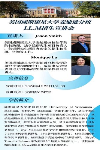 美国威斯康星大学麦迪逊分校LL.M招生宣讲会