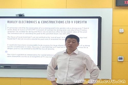 随后,陈磊教授比较分析了普通法和中国法上损害赔偿的计算方法。他指出,普通法上,损害赔偿的评估参照实际履约与合同承诺履约之间的“价值差额”,在适当情况下,可根据治愈成本评估。在中国法律中,虽然对于违约损害赔偿的计算并没有具体的规定,但法院在实践中借鉴了普通法中的类似方法,即“difference in value”(价值差额,简称DIV)和“cost of cure”(治愈成本,简称COC)这两种计算方法。同时,陈磊教授详细讲解了一个关于英国建筑合同纠纷的著名案例(Ruxley Electronics & Construction Ltd v Forsyth [1996] 1 WLR 586),并带领同学们就损害赔偿问题从中国法视角对案例进行了深入探讨。