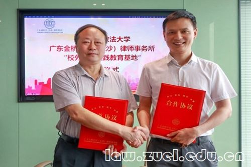 双方举行了校外法学实践教育基地的签约及授牌仪式。我院党委书记张学平与广东金桥百信(长沙)律师事务所主任、党支部书记喻佳锋作为双方代表在合作协议上郑重签字;我院副院长张宝与广东金桥百信(长沙)律师事务所监事长张雅文共同为华人策略celue校外法学实践教育基地揭牌。