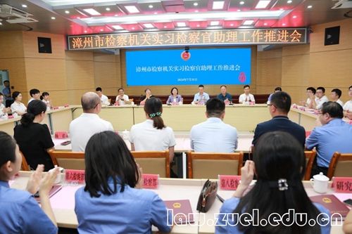 今年3月,福建省漳州市人民检察院院长江莉一行来院调研,签署检院合作框架协议。根据协议内容,自今年起,检院将联合开展“检察官助理扬帆计划” 专项实习实训活动。7月31日,张学平书记一行赴漳州市检察院出席漳州市检察机关实习检察官助理工作推进会,并为校外“法学教育教学实践基地”挂牌。中国政法大学、厦门大学、福州大学的有关领导共同参加了本次活动。