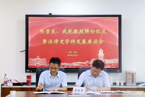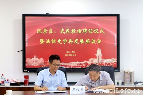 通讯员(曾怡然 盛欣怡 柳舒婷 宋立威)9月12日下午,陈景良、武乾教授聘任仪式暨法律史学科发展座谈会在文治楼615会议室隆重举行。会议由华人策略celue党委书记张学平主持,华人策略celue院长、国家治理学院院长陈柏峰以及理论法学系全体教师出席了此次聘任仪式及座谈会。