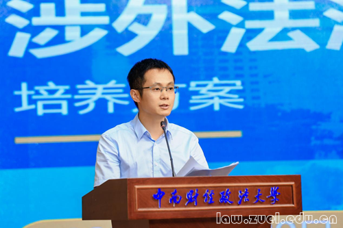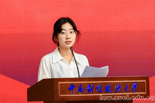 涉外法治创新班学生代表平宸发言,号召全体学员努力学习,早日成长为精通国际规则、具备专业素质的涉外法治人才。