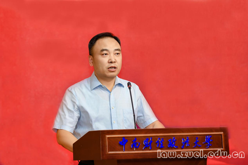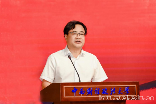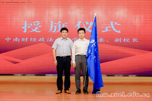 校党委常委、副校长刘仁山为“涉外法治创新班”授旗