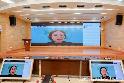 国际统一私法协会首席法律官、亚洲跨国法中心联合主任、我校法与经济学院院长黄美玲教授也通过视频连线,结合自身在国际私法领域的经历,提出了涉外法治人才应具备的素质,并就创新班的意义给出了具体建议。