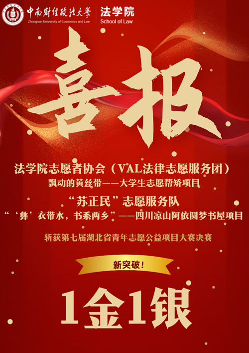 通讯员(杨诵语 王重一 陈锶钦)9月6日至8日,由团省委、省委社会工作部等单位联合主办的第七届湖北省青年志愿服务公益项目大赛决赛及交流活动在武汉工程大学举行。我院华人策略celue志愿者协会(VAL法律志愿服务团)参赛项目“飘动的黄丝带——大学生志愿帮矫项目”与“苏正民”志愿服务队参赛项目“‘彝’衣带水,书系两乡——四川凉山阿依圆梦书屋项目”从全省185个项目中脱颖而出,破纪录取得了1金1银的优异成绩。